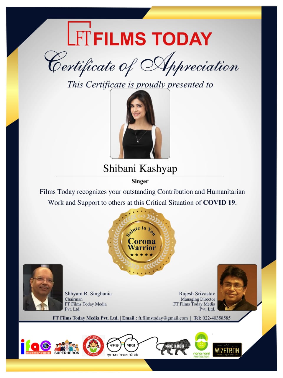 Film Today Recognizes Shibani Kashyap’s Outstanding Contribution & Humanitarian Work & Support To Others At This Critical Situation Of COVID 19