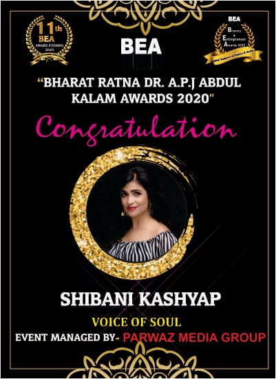 Bharat Ratna DR. A.P.J Abdul Kalam Awards 2020” Today Recognizes Shibani Kashyap’s as Voice of Soul